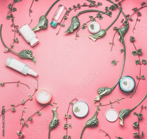 Beauty Frame With Various Facial Cosmetic Products With Mock Up